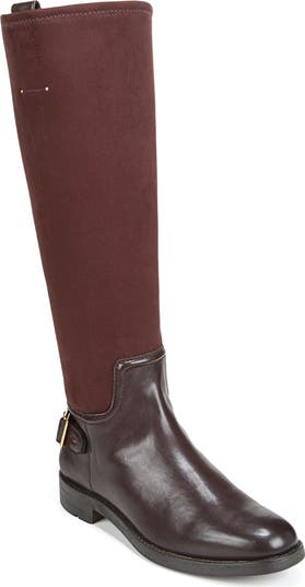An equestrian-inspired boot is enhanced by a sleek almond toe, buckle detail and full-length side zipper closure for easy on and off.