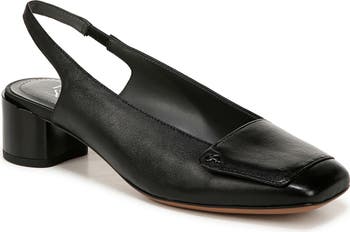 A square toe heightens the modern sensibility of a slingback pump set on a just-right block heel.