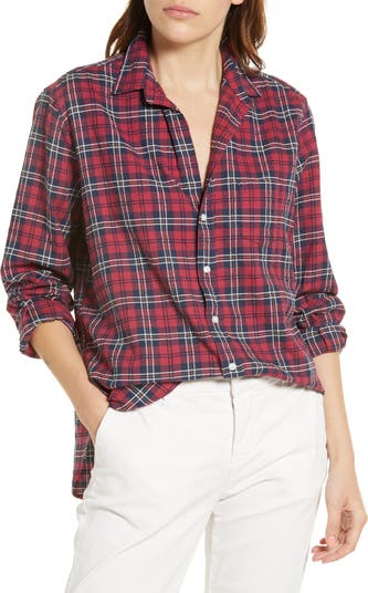 Classic plaid brings old-school style to a cotton button-up shirt that's styled with a notched collar and abbreviated button placket.