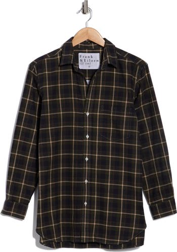 Crisp cotton punctuated by plaid stripes lends timeless appeal to this button-up shirt finished with a curved hem and laid-back fit.