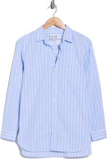 Crisp cotton punctuated by stripes lends timeless appeal to this button-up shirt finished with a curved hem and laid-back fit.