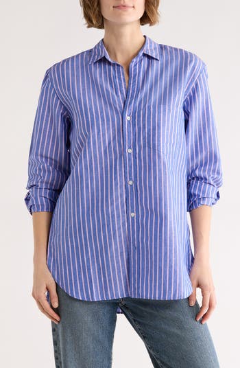 Lightweight cotton delivers breathable comfort to this button-up shirt finished with a curved hem and relaxed fit.