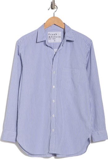 Crisp cotton punctuated by stripes lends timeless appeal to this button-up shirt finished with a curved hem and laid-back fit.