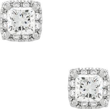 10K White Gold Lab Grown Princess Cut Diamond Halo Stud Earrings