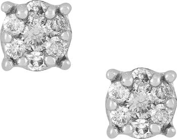 Pavé diamonds bring luxurious sparkle to these dainty round stud earrings crafted from polished 10-karat white gold.