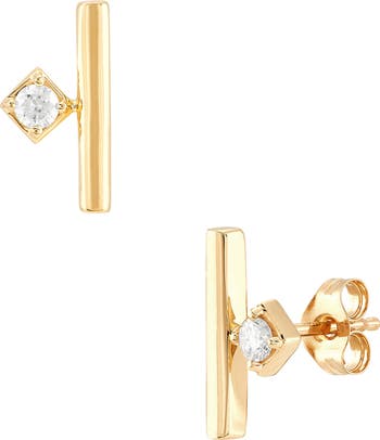 Prong-set brilliant-cut diamonds bring luxurious sparkle to dainty bar stud earrings crafted from warm 10-karat yellow gold.