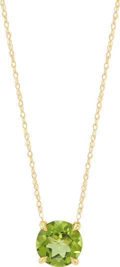 A prong-set round perdiot sparkles from this dainty pendant necklace crafted from warm 10-karat yellow gold.