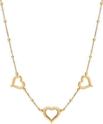 10K Yellow Gold Triple Heart Beaded Station Chain Necklace