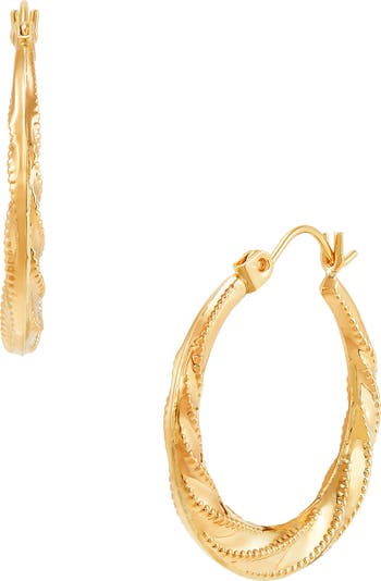Swirling milgrain textures these elegantly twisted hoop earrings crafted from warm 14-karat yellow gold.