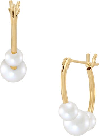 14K Yellow Gold Cultured Pearl Hoop Earrings