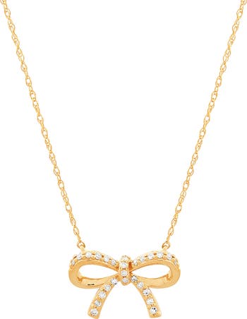 14K Yellow Gold Diamond Bow Pendant Necklace