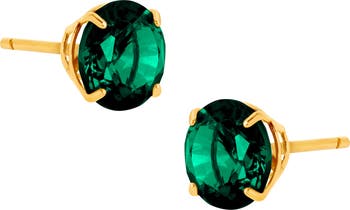 Round-cut created emerald solitaires add vibrant sparkle to your lobes in these elegant stud earrings crafted from gleaming 10-karat gold.