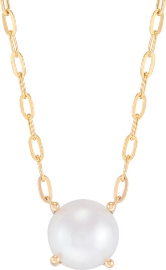 A delicate chain crafted from warm 10-karat gold is centered by a cultured pearl pendant to bring an air of elegance to special-occasion necklines.