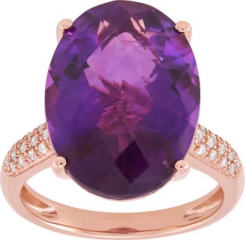 Three rows of bright-white diamonds frame the shank of an amethyst-centered ring that delivers luxurious shine and sophistication to special-occasion looks.