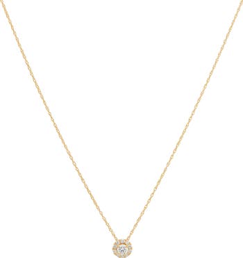 A delicate chain crafted from warm 10-karat gold is centered by a lab-grown-diamond adorned pendant designed to illuminate any neckline with elegant sparkle.