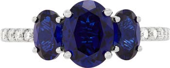 Lab-grown diamonds and sapphires deliver luxurious shine and sophistication atop a slender ring crafted from icy 10-karat gold.