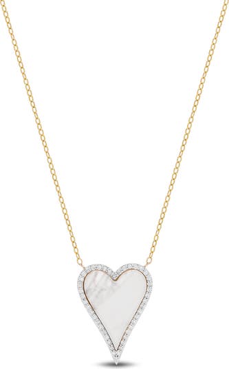 Mother-of-Pearl & White Sapphire Heart Pendant Necklace