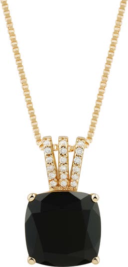 A striking pendant necklace showcases elemental beauty with a dramatic black onyx topped by glittering diamonds.