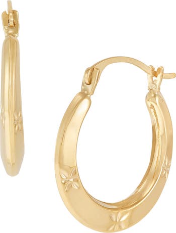 Dainty marks in the shape of blooms add a touch of sweetness to 14-karat-gold earrings designed to modernize your hoops collection.