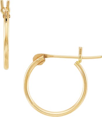 A slim silhouette adds contemporary shine to these hoop earrings crafted from gleaming 10-karat gold.