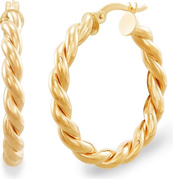 A twisted design adds an elegant flourish to these hoop earrings crafted from gleaming 14-karat gold.