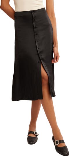 This satin button-front skirt gives your look a fresh, relaxed vibe that's perfect for brunch, weekend parties and resort getaways.