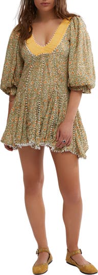 Little loops trim this flouncy cotton-blend minidress with godets along the skirt for tons of movement with every step you take.