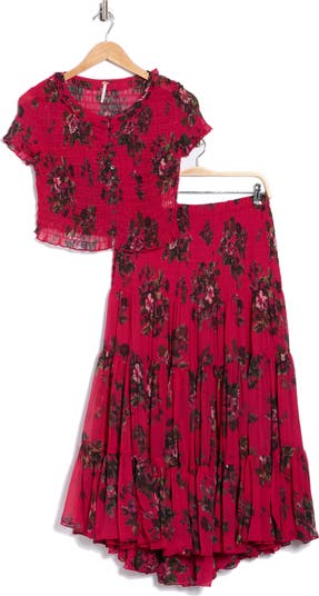 Easily go from the farmers' market to weekend brunch in this floral set featuring a smocked crop top and a high-waisted maxi skirt.