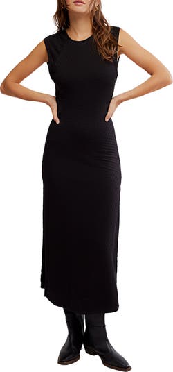 Eyelet embroidered details texture a figure-skimming midi dress designed with an alluring open back and soaring side slit.