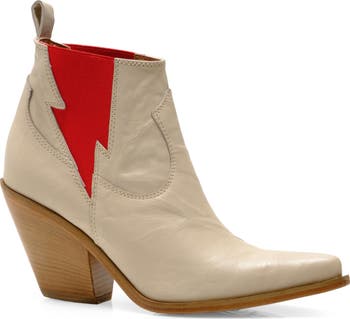 Lighting bolt-inspired zigzag cutouts energize this Chelsea boot given a Western spin with a pointed toe and Cuban heel.