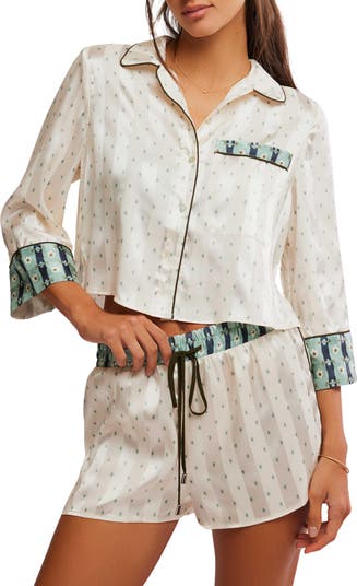 Smooth satin pajamas speak for themselves with a lightly cropped fit and comfy drawstring waist.