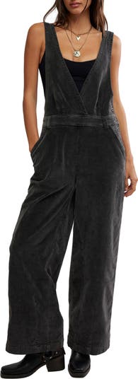 Plush stretch-kissed cotton corduroy elevates the retro style of these wide-leg overalls that perfectly embrace on-trend utility style.