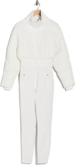 Keep it sleek on the slopes in this mixed‑media ski suit, complete with a synthetic‑down‑filled top, fitted bottoms and a full‑zip front for easy on‑and‑off.