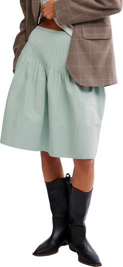 Pintuck pleats at the waist create the crisp, classic silhouette of this woven cotton midi skirt that's ideal for any occasion.