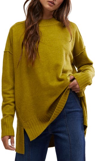 Dropped shoulders lend to a slouchy fit on this woolly longline sweater anchored by ribbed trim.