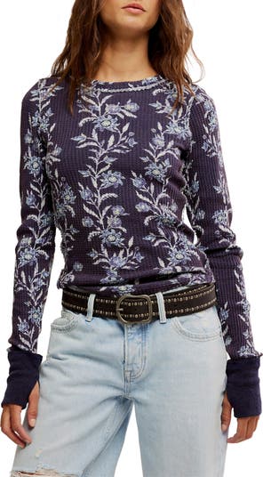Cozy thermal stitching textures this pure-cotton top cut in a cool cropped fit and covered in a lively print.