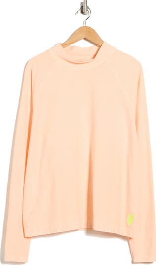 A relaxed silhouette and sporty raglan sleeves emphasize the weekend-ready vibe of this rashguard-inspired top detailed with a neon logo accent.