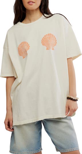 A pair of scallop shells adds a playful touch to the chest of an oversized cotton T-shirt that's an essential for beach days, or at least daydreaming of sandy adventures.