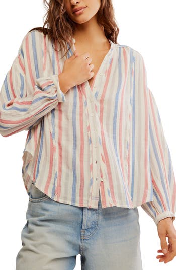 Breezy and billowy in airy cotton double cloth, this button-up sports faded stripes and frayed edges that give it the look and feel of one you've owned and loved for years.