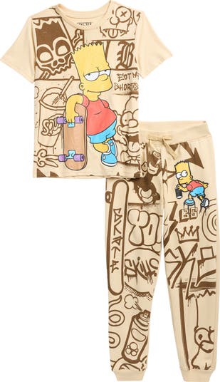 Your youngster can rep their favorite cartoon character with this Simpsons-themed set featuring a comfy cotton-blend T-shirt and matching joggers covered with playful Bart graphics.
