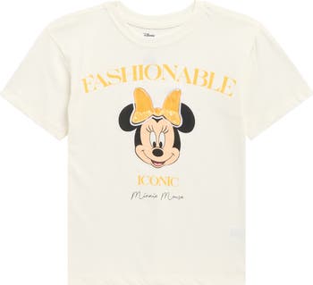 An adorable graphic of a glitter-filled Minnie Mouse brings ultimate playfulness to this T-shirt cut from a breathable cotton blend.