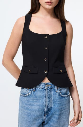 Clean lines, bold vibes. This sleek stretch-enhanced twill vest is slightly flared and ready to own whatever scene you step into.