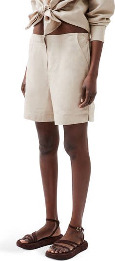 Simple details lend a sophisticated appearance to shorts tailored with a longer inseam from a lightweight linen blend to pair well with elevated looks.