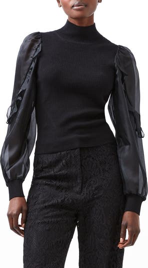 Sheer organza sleeves with a slightly puffed look to them frame a ribbed-knit top that clings to your curves to make it a perfect night-out choice.