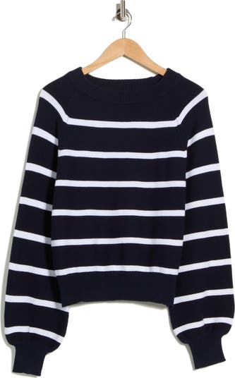 A perfect layer or solo staple, this cotton sweater is framed by balloon sleeves and ringed with stripes.