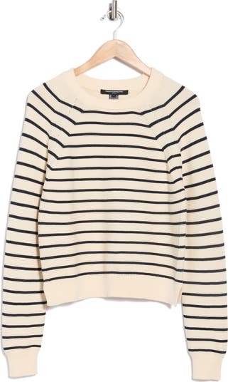 Knit in a stripe pattern from soft cotton yarn, this crewneck sweater is a chic cold-weather essential.