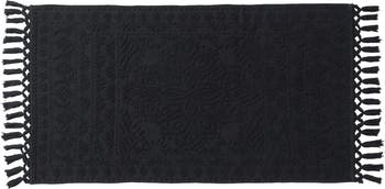 Refresh your bathroom with this cotton rug featuring a geometric pattern and fringe trim.