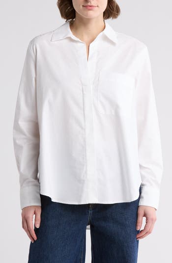 Pure-cotton fabrication gives a crisp look and feel to an oversized button-up inspired by your favorite menswear piece.