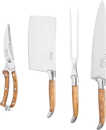 Wooden handles bring refined detail to this assorted 4-piece set of carving utensils crafted with stainless-steel blades.