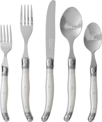 This easy-care flatware, made from high-grade stainless steel, merges a polished head with a vibrant handle for timeless place setting you'll enjoy every day.